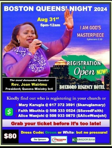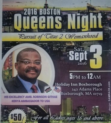Boston Queens Ministry is a non-profit organization and fully registered in Massachusetts, U.S.A. It was founded in 2013 in Brockton Massachusetts by Mary Karugia with a purpose to Empower women.